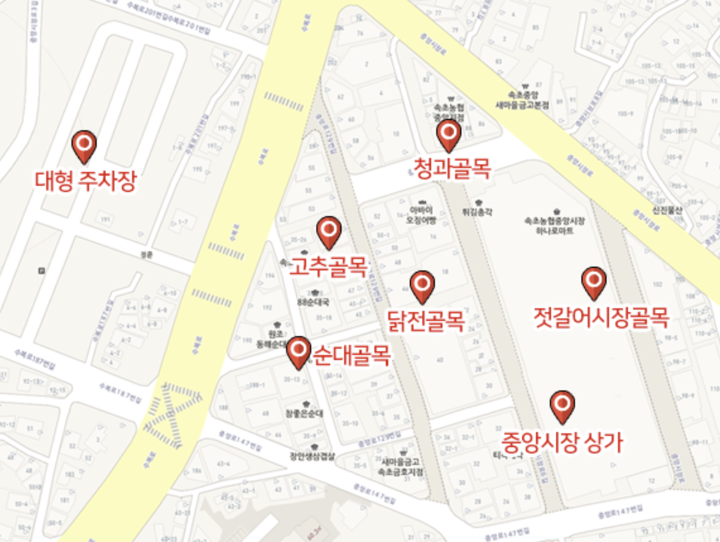 속초 중앙시장 안내도
